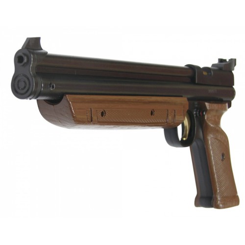 Это американский длинноствольный пневматический пистолет. Изготовленный из оружейной стали Crosman 1377 C обладает солидной мощностью. За счет облегченной пластиковой рукояти пистолет имеет оптимальный вес. Выстрел производится благодаря накачиваемому подствольной помпой воздуху. Боеприпасами для Crosman P1377BR American Classic Brown служат пневматические пули калибра 4,5 мм.