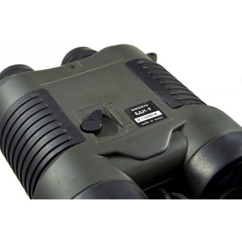 В ночном каналебинокля используется герметизированный электронно-оптическийпреобразователь (ЭОП) поколения 2+ с прямым переносом изображения, смикроканальным усилением и встроенным высоковольтным источникомпитания. Малые габаритные размеры ЭОП II+ позволили значительноуменьшить габаритные размеры и весбинокля БДН-9 по сравнению биноклями, использующими ЭОПпредыдущих поколений. Прибор имеет автоматическую регулировку яркостиизображения и встроенную защиту от световых перегрузок. При превышенииуровня освещенности, автоматически отключается питание ЭОПа. Этопоможет сохранить Вам не только оптическую систему бинокля, но ивнутреннее спокойствие.