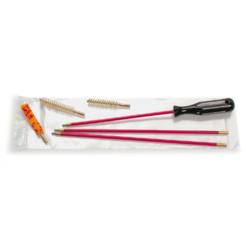 Комплект: стальной шомпол(разборный) в пластиковой оболочке,щетинный ершик,щетинный металлический ершик и пуховик.