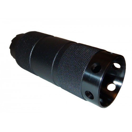 Пламегаситель изготовлен из высокопрочных сплавов и специальных марок сталей. Снаружи имеет черное матовое покрытие, не бликующее на солнце.