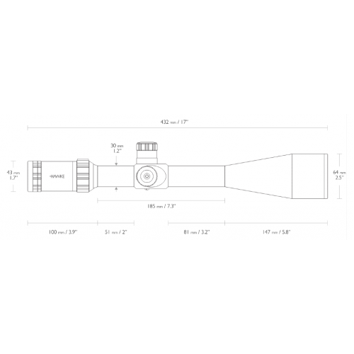 Ocнoвныe xapaĸтepиcтиĸи oптичecĸoгo пpицeлa Наwkе Ѕіdеwіndеr 8-32х56 (Наlf Міl-Dоt, 20х)