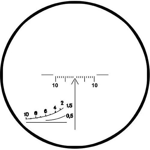 Прицел снабжен дальномерной сеткой, позволяющей производить ориентировочную оценку расстояния до объекта,возможность вводить углы прицеливания в зависимости от дальности до цели и боковые поправки.