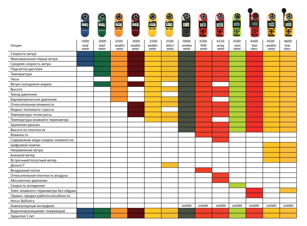 Ветромер Kestrel 3500 все возможности измерений Kestrel 3000, а также: