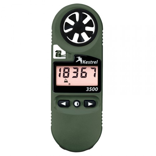 Ветромер Kestrel 3500 имеет большинство функций из серии Kestrel 3000. Kestrel 3500 измеряет температуру, скорость ветра, атмосферное давление, прогноз давления на 3 часа, и многое другое. Kestrel 3500 обеспечивает полный спектр погодных измерений, но не сохраняет сделанные измерения, как это делает Kestrel серии 4000. Для тех, кому нужно полную последнюю информацию о погоде, 3500 является идеальным ветромером Kestrel.