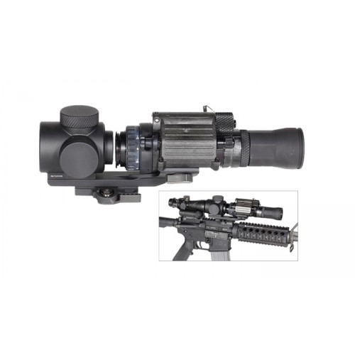 В базовой комплектации Zero Lens поставляется с кронштейном для установки ночного монокуляра PVS-14, наиболее распространенного и совершенного изделия подобного класса в мире. Под заказ возможно изготовление кронштейнов для любых монокуляров. Так же в стандартной комплектации поставляется афокальный объектив с увеличением 3 крата для установки на PVS-14. В целом, возможно использование монокуляра и без объектива, но оптическая система Zero Lens дает эффект демагнификации – уменьшения изображения, и объектив используется для нивелирования этого эффекта. При использовании 3х объектива на выходе мы получаем изображение 1:1, как если бы просто смотрели в монокуляр. По дополнительному заказу возможна поставка объектива 6х, что обеспечивает удвоение кратности используемого прицела.